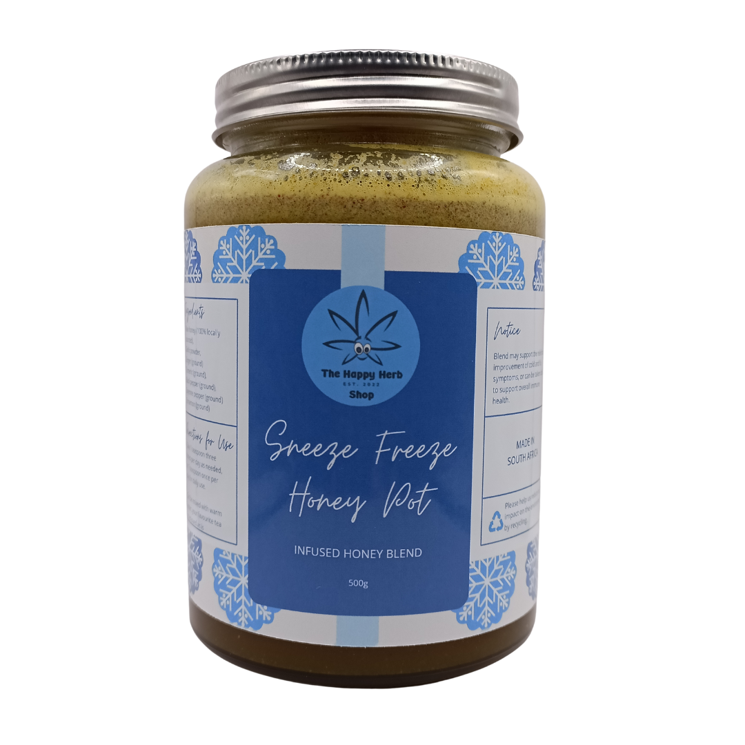 Our Sneeze Freeze Honey Pot holds all the ingredients your body needs to conquer those winter colds and flus.